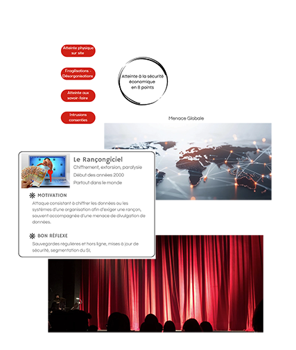 À la fin de nos formations, nous proposons un serious game pour permettre à vos collaborateurs de mettre en pratique, de manière ludique, les connaissances acquises et de déjouer les risques cyber et physiques pour votre société.